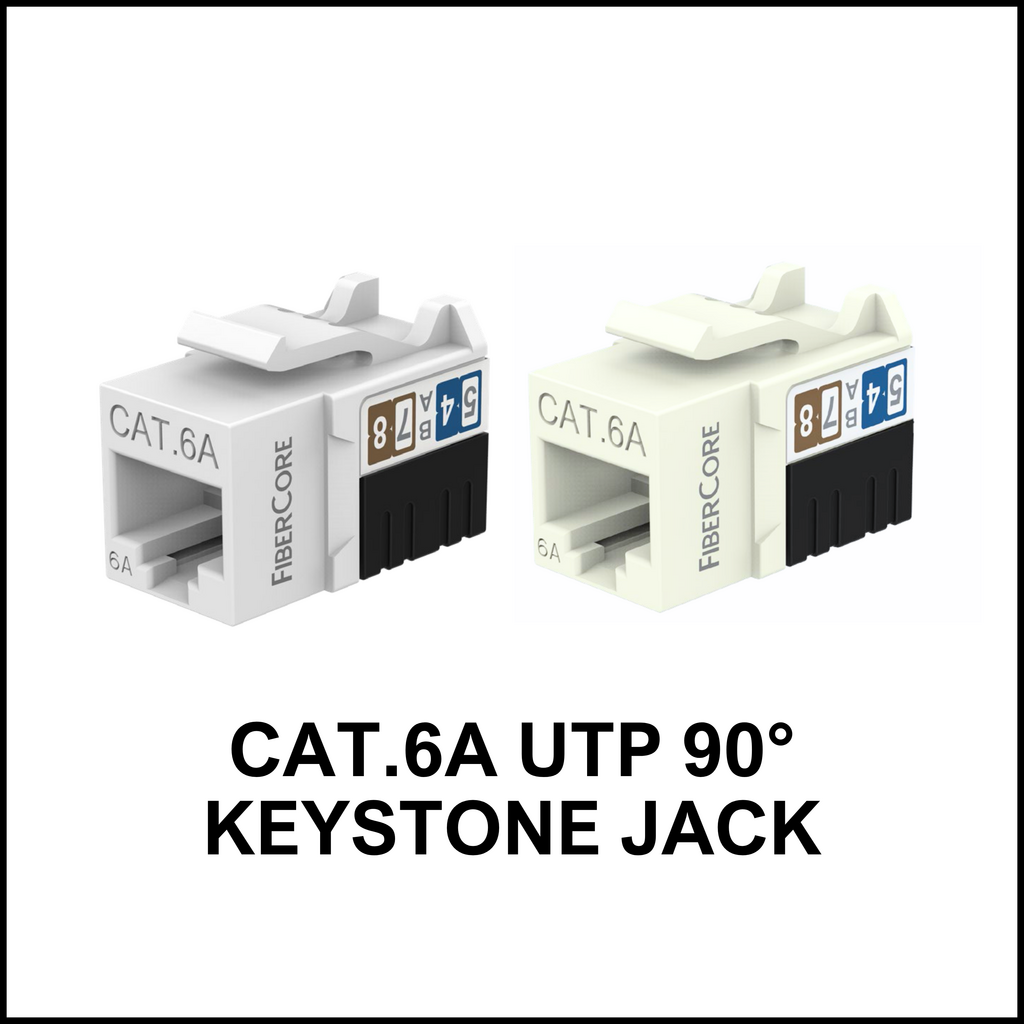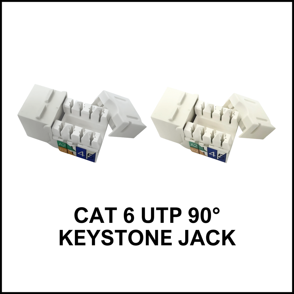 Compact and space-efficient unshielded twisted pair (UTP) keystone jack with a 90-degree angled termination, ideal for installations with limited depth such as wall outlets and faceplates. Provides neat cable routing and dependable performance for structured cabling applications.