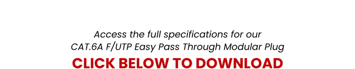 The CAT.6A F/UTP Easy Pass Through Modular Plug is engineered for efficient and reliable field termination in high-performance networking environments. Featuring a pass-through design for quick and accurate wire alignment, it supports both stranded and solid cables, ensuring consistent connectivity. Built with durable materials and precision gold-plated contacts, it delivers stable signal transmission and long-lasting performance—ideal for structured cabling applications requiring speed, accuracy, and reliability.