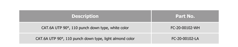 The FiberCore CAT6A UTP 90° Punch Down Keystone Jack delivers a compact and efficient solution for high-performance structured cabling systems. Designed with a 90-degree slim profile, it optimizes space in high-density installations while supporting reliable data transmission. Compatible with T568A and T568B wiring schemes and supporting 4PPoE applications, it ensures stable connectivity and easy integration into standard wall plates for modern network environments.