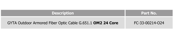 The GYXTW Outdoor Fiber Cable MM 24 core OM2 delivers reliable multimode fiber connectivity using OM2 fibers with low attenuation and high bandwidth performance. Engineered with dual steel wire strength members and corrugated steel strip armoring, this black HDPE-sheathed cable ensures rugged durability for 24-core outdoor deployments.