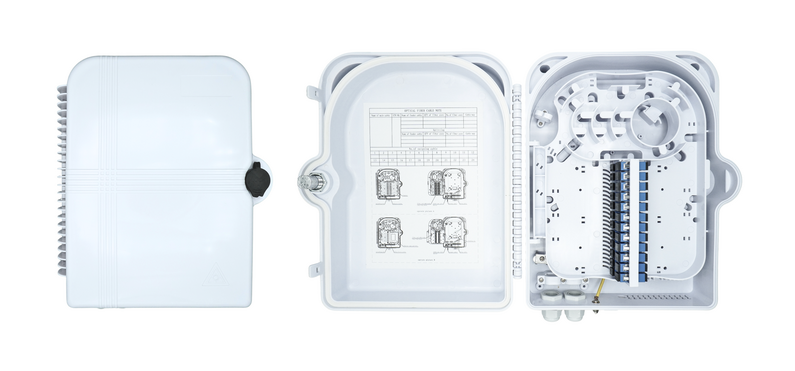 The FiberCore OTB 24 Port Outdoor Optical Termination Box is a reliable solution for FTTx applications requiring secure and high-capacity fiber distribution in outdoor environments. Supporting up to 24 SC, LC, FC, or ST adapters, it integrates fiber splicing, termination, and optional PLC splitter installation within a weather-resistant ABS enclosure. With a wall-mounted or pole-mounted design and IP65-rated protection, it ensures dependable performance and durability, making it ideal for Fiber-to-the-Home (FTTH), CATV, telecommunication, and data communication network deployments.