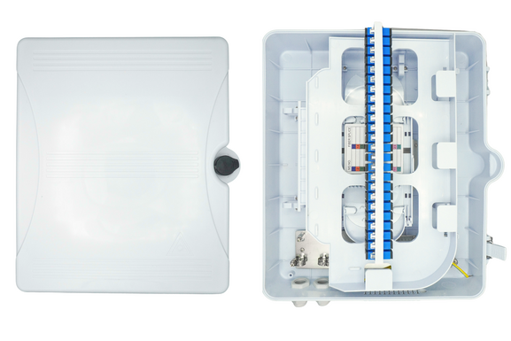 The FiberCore 48 Port Outdoor Optical Termination Box is a robust solution for FTTx applications requiring high-capacity fiber termination and distribution in outdoor environments. Supporting up to 48 SC, LC, FC, or ST adapters, it accommodates fiber splicing, termination, and optional PLC splitter installation within a durable weather-resistant enclosure. Designed for wall-mounted or pole-mounted installation, it features IP65-rated protection and a wide operating temperature range of -40℃ to +85℃, ensuring reliable performance in harsh conditions.