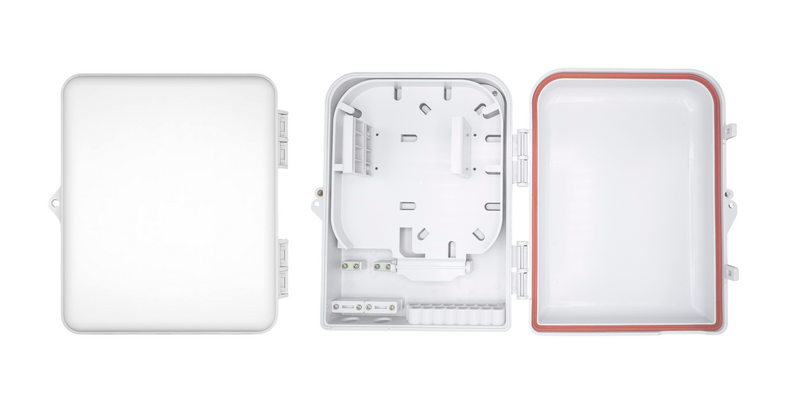 The FiberCore OTB NAP Box - B is a durable outdoor optical termination solution for FTTx networks, supporting up to 16 fibers with flexible splitter options (2×1:8 or 1×1:16). Built from ABS plastic with 2 cable entry ports and 16 drop cable ports, it ensures secure fiber distribution and easy installation on walls or poles. Its weather-resistant design delivers reliable performance for FTTH, CATV, telecom, and data communication applications.