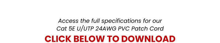 The Cat 5E U/UTP 24AWG PVC Patch Cord offers a dependable and flexible solution for structured cabling and network connectivity. Designed with a scorpion-type clip boot for easy cable identification and protection, it features gold-plated RJ45 connectors and bare copper conductors for consistent performance. With multiple length options and color clips available, this patch cord ensures organized installation, durability, and reliable data transmission for various networking environments.