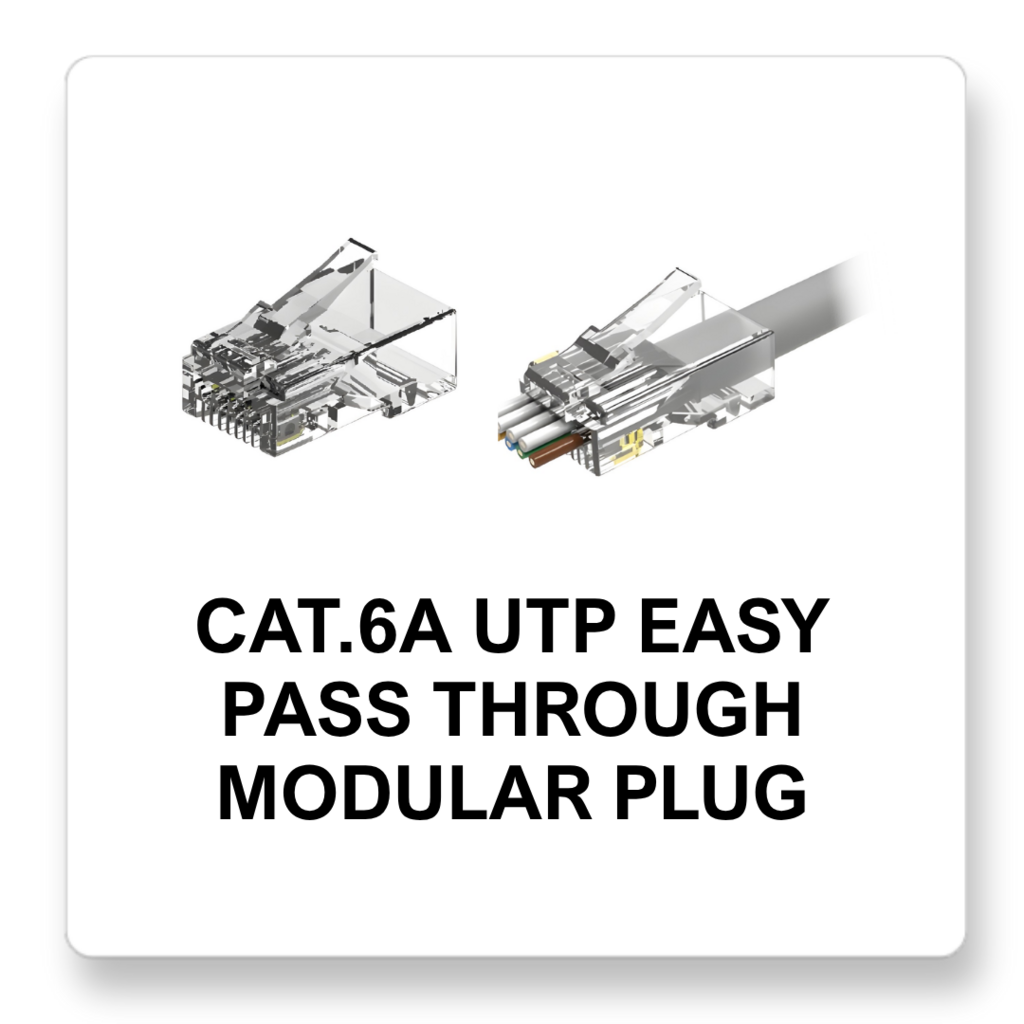 Standardized connectors used to terminate UTP cables for network communication. Ensures secure connections and compatibility with Ethernet devices and structured cabling systems.