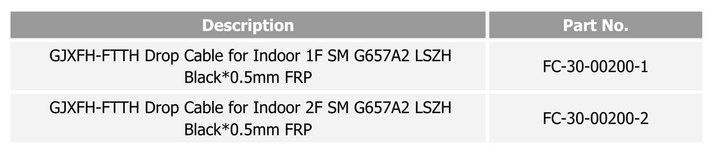 The FiberCore Indoor Drop Cable GJXFH-FTTH delivers reliable single-mode fiber connectivity using G.657A2 fibers with low bending loss and flame-retardant LSZH sheathing. Designed with dual 0.5mm FRP strength members, this black flat-type cable ensures durable performance for 1F and 2F indoor installations.