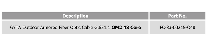 The GYXTW Outdoor Fiber Cable MM 48 core OM2 delivers reliable multimode fiber connectivity using OM2 fibers with low attenuation and high bandwidth performance. Engineered with dual steel wire strength members and corrugated steel strip armoring, this black HDPE-sheathed cable ensures rugged durability for 48-core outdoor deployments.